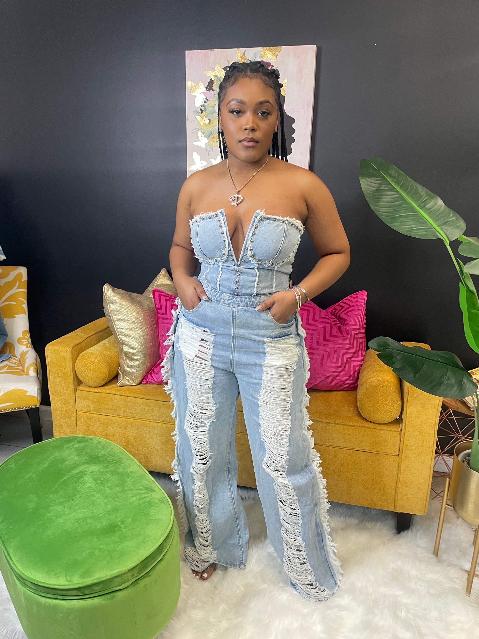 DISTRESSED DIVA DENIM JUMPSUIT